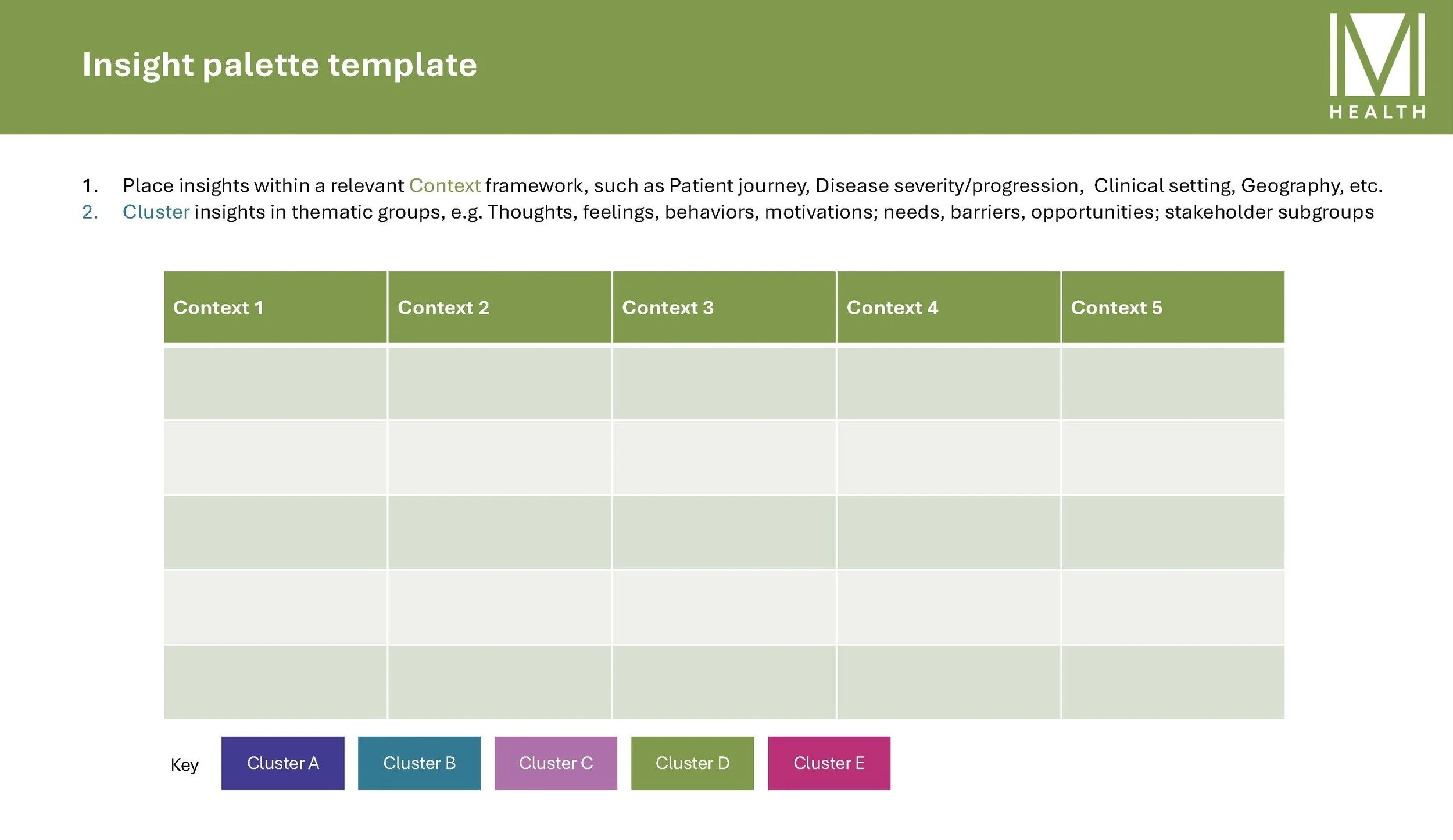 This simple framework helps teams organize stakeholder insights by context (e.g., patient journey, clinical setting) and theme—before jumping to solutions. It’s a small example of how structure can sharpen creative thinking without oversimplifying reality.